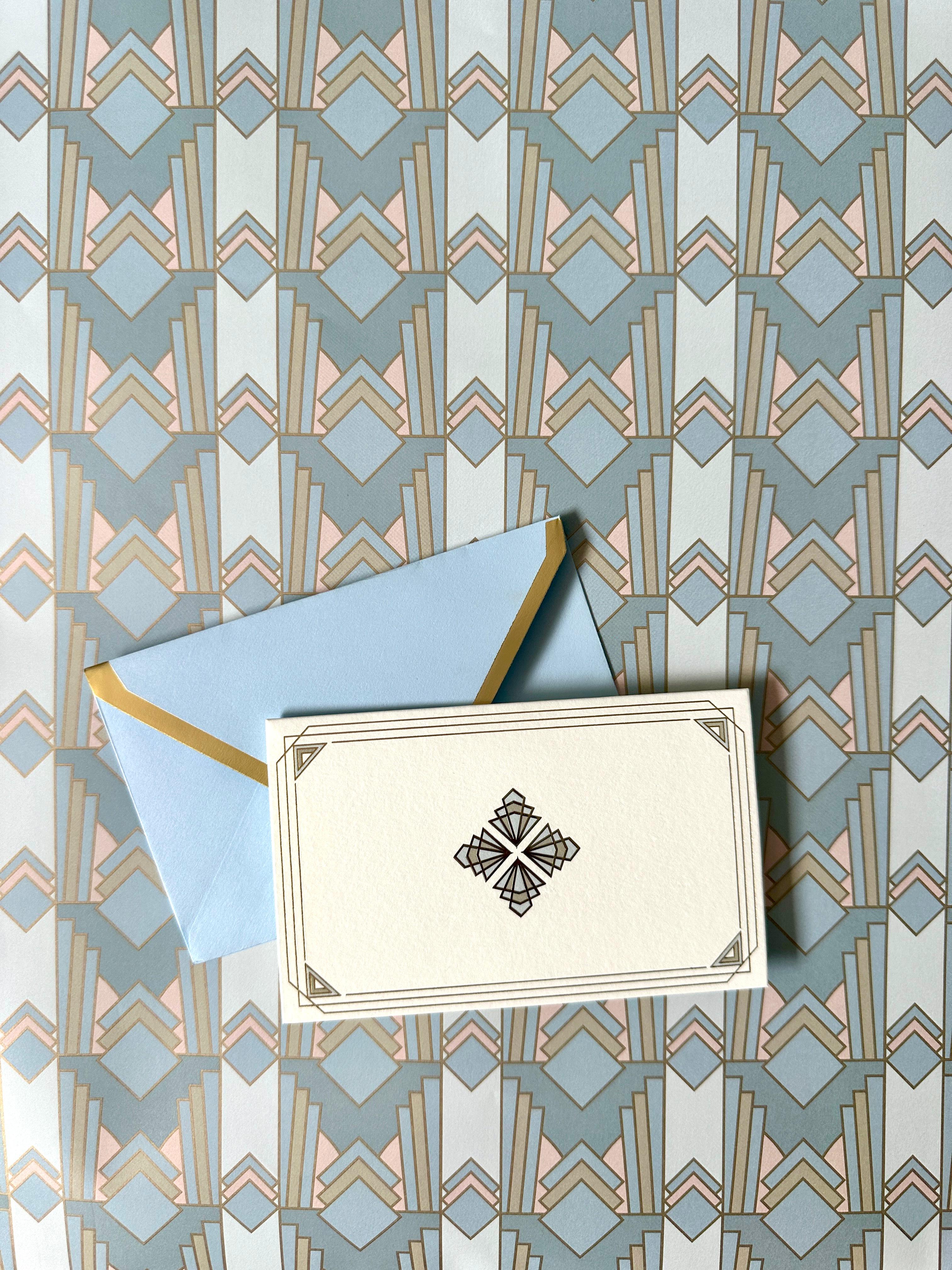 Inspired by the bold elegance unveiled at the 1925 Paris Exhibition, The Gilded Era collection by Paperfields and Art Deco Mumbai Trust celebrates the spirit of Deco through refined patterns and geometry. Each motif - frozen fountains, chevrons and abstract forms - is reimagined with intricate detailing and gilded accents. A tribute to design and heritage of this Gilded Era.
