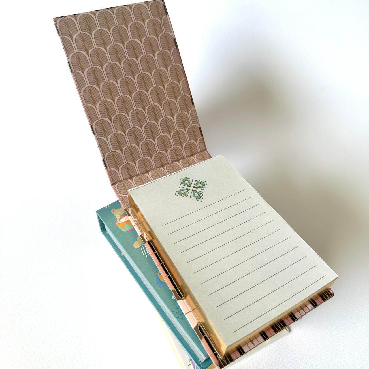 This block pad is handy to have around, whenever you need to jot down something. The 200 tear off sheets each have a motif and a protected by a hardcover of a coordinated pattern.