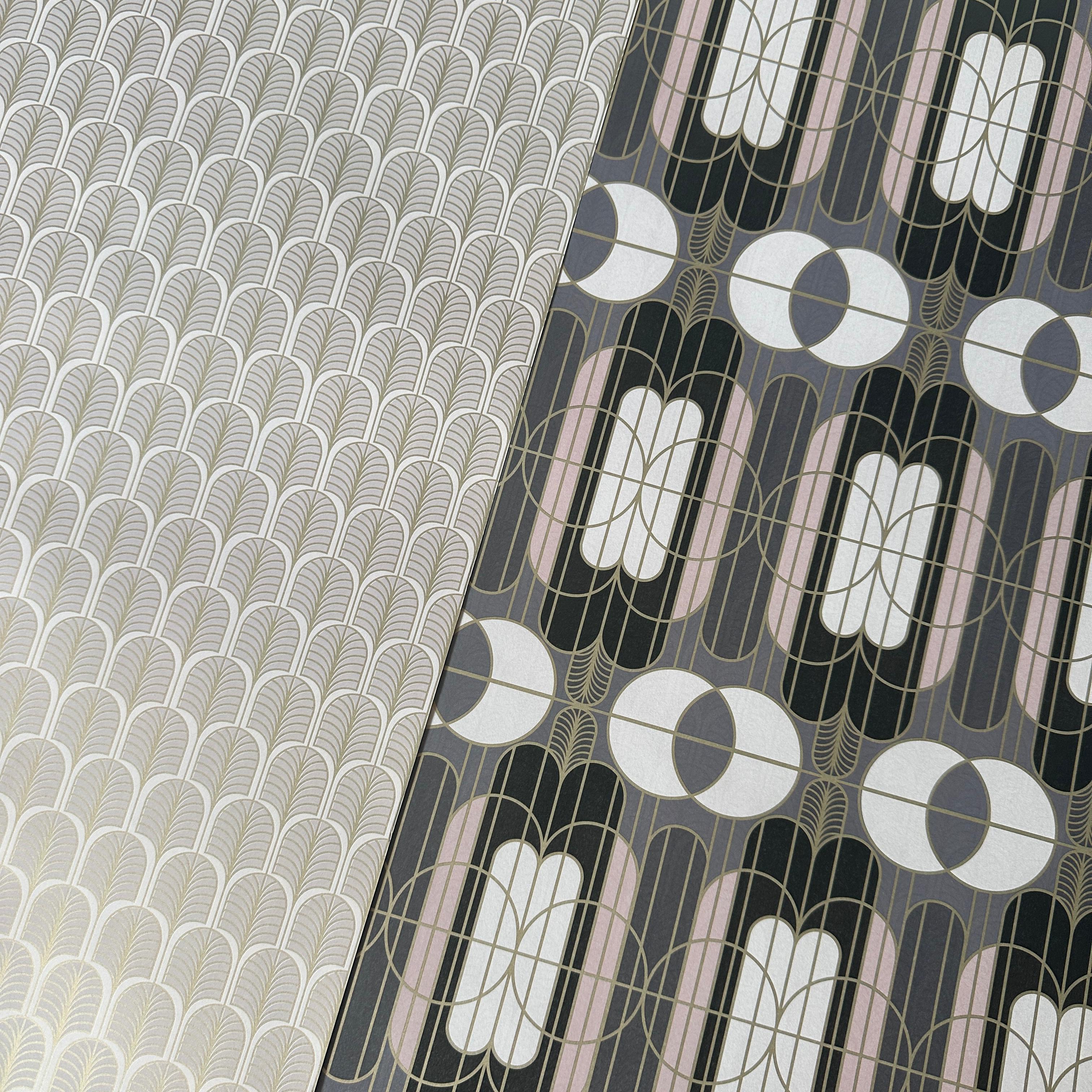 Inspired by the bold elegance unveiled at the 1925 Paris Exhibition, The Gilded Era collection by Paperfields and Art Deco Mumbai Trust celebrates the spirit of Deco through refined patterns and geometry. Each motif - frozen fountains, chevrons and abstract forms - is reimagined with intricate detailing and gilded accents. A tribute to design and heritage of this Gilded Era.