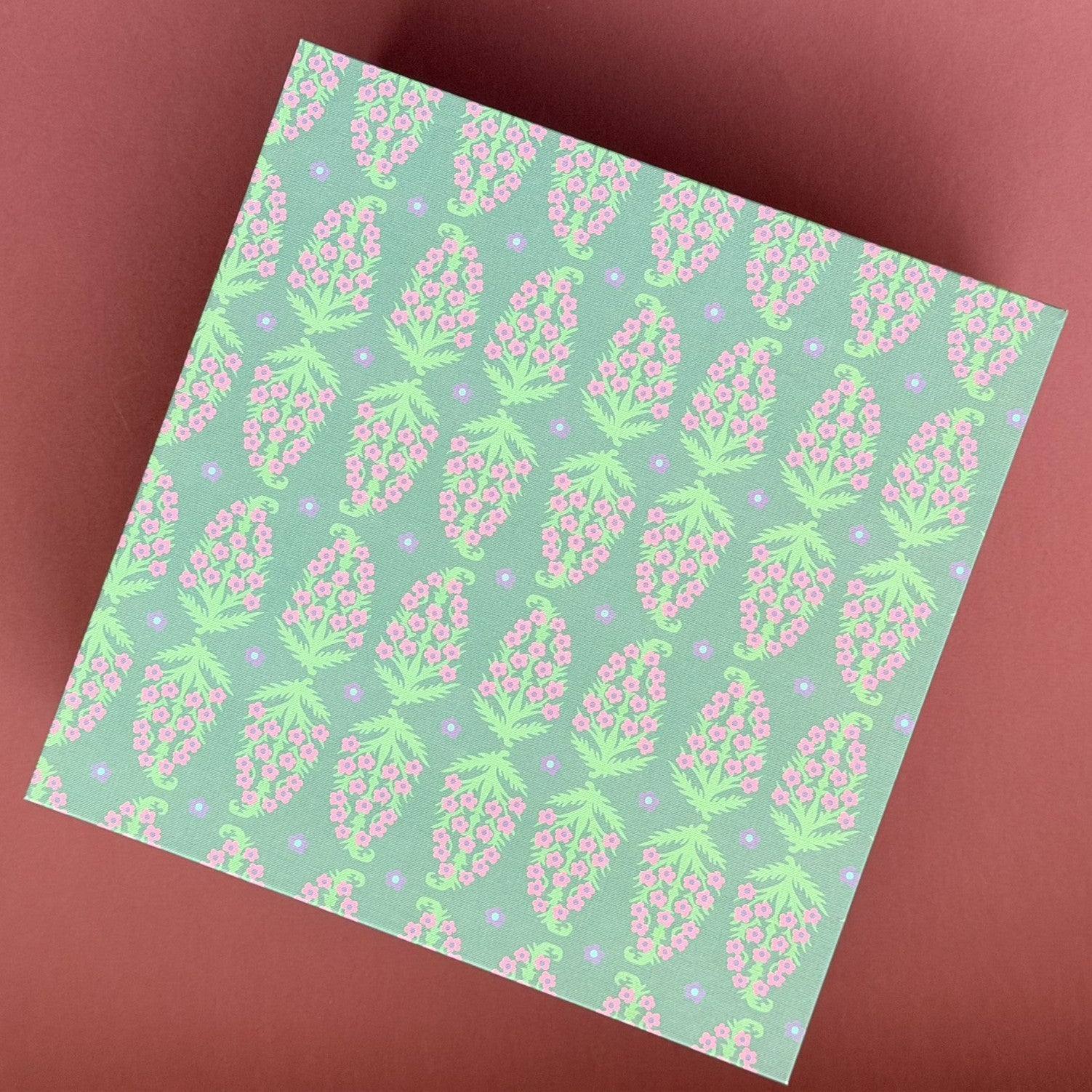 With a modern twist on the iconic paisley symbol, this design in vibrant tones pays homage to an ancient motif believed by some scholars to represent life and eternity in Zoroastrian tradition. It evokes a variety of forms, from mangoes to feathers, tadpoles, and even the yin-yang symbol. A truly versatile design, it brings a burst of energy to any occasion.